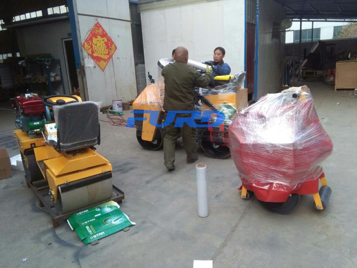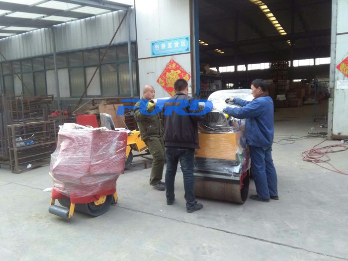 3月28日上午,福瑞得機械座駕壓路機,手扶壓路機包裝完畢準備發貨。
