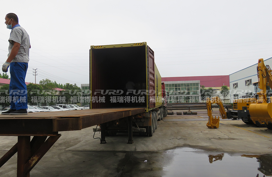 9月3日,福瑞得機械6臺手扶雙輪壓路機、和2臺9米移動燈車裝車出口非洲。