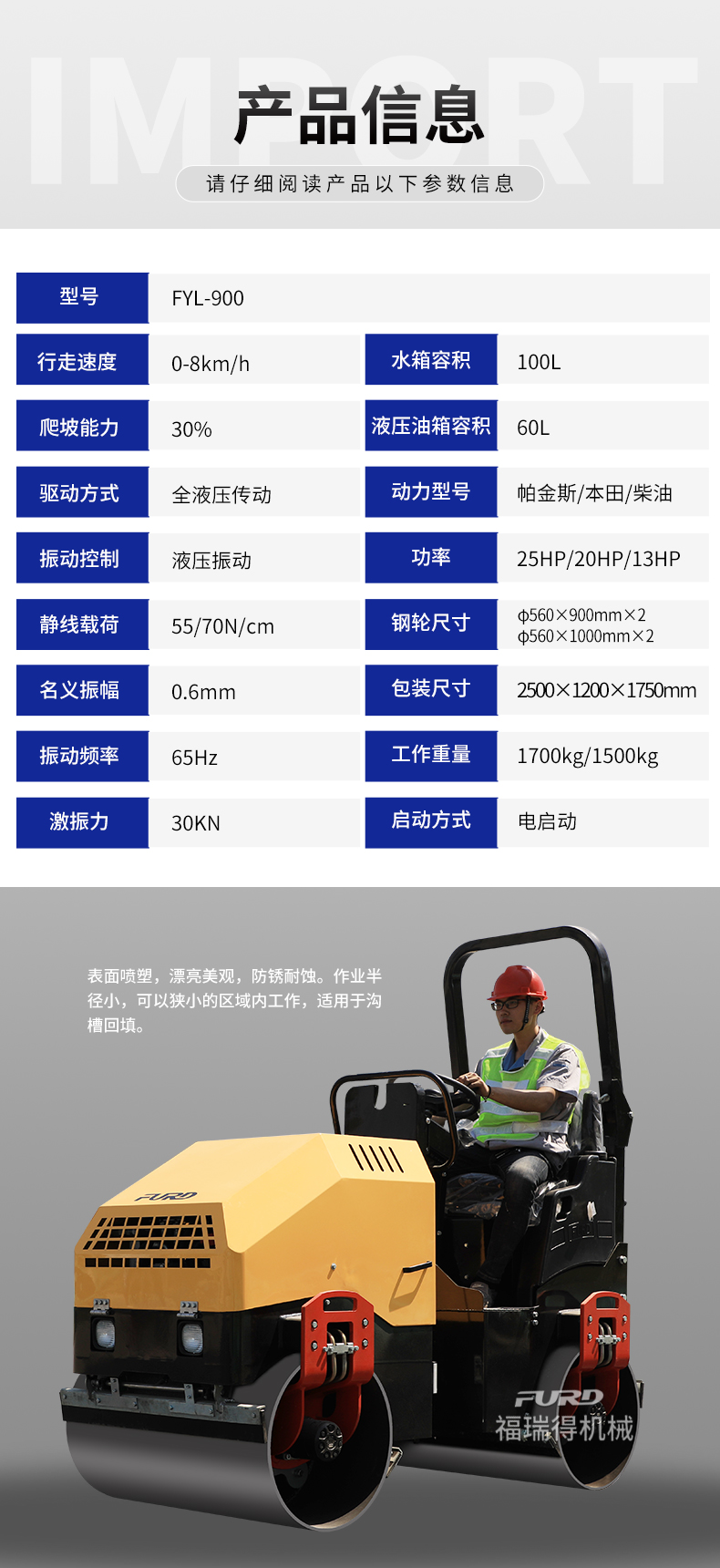 FYL-900 1.7T全液壓振動壓路機(jī),小型壓路機(jī)