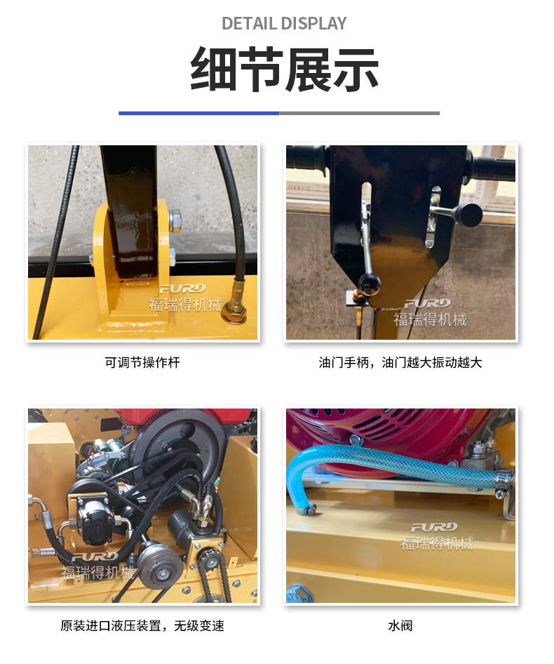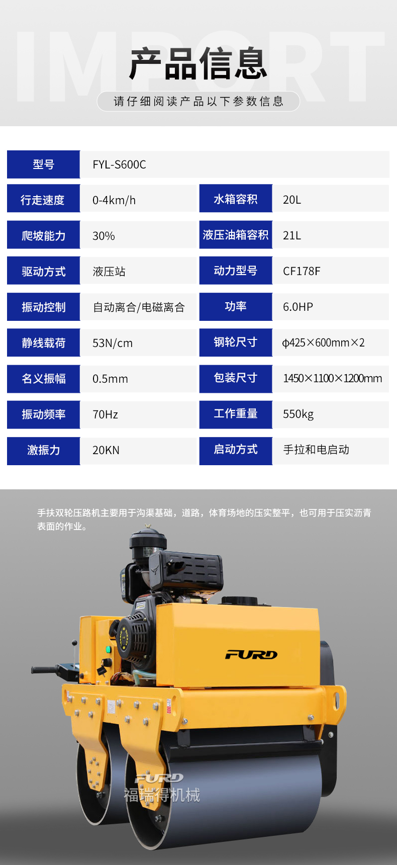主要用于溝渠基礎,道路,體育場地的壓實整平,也可用于壓實瀝青表面的作業。