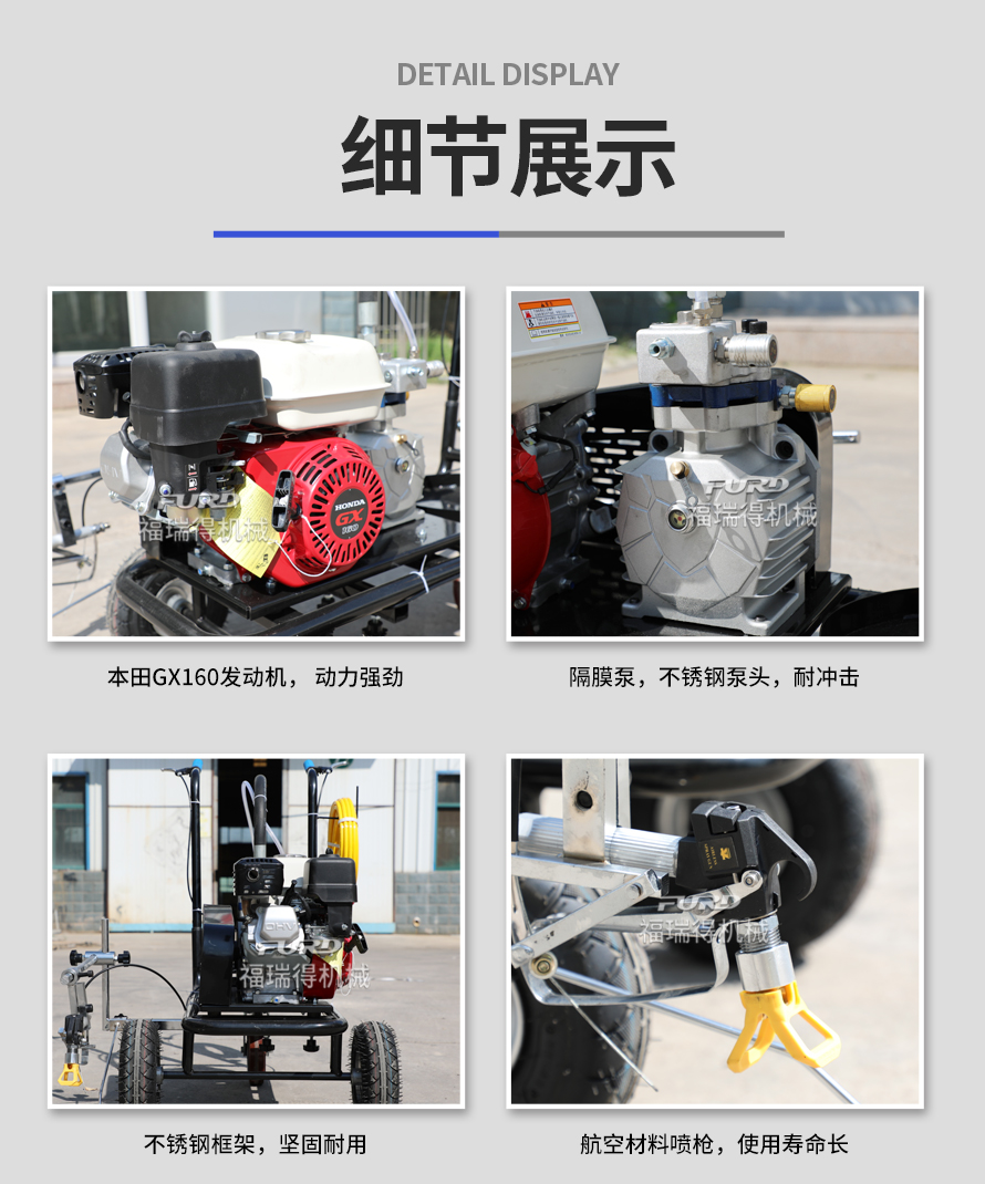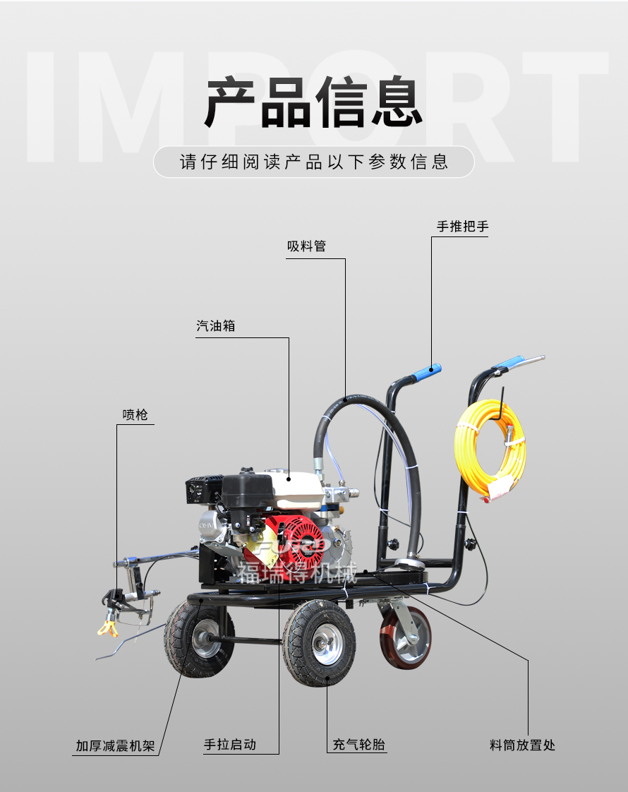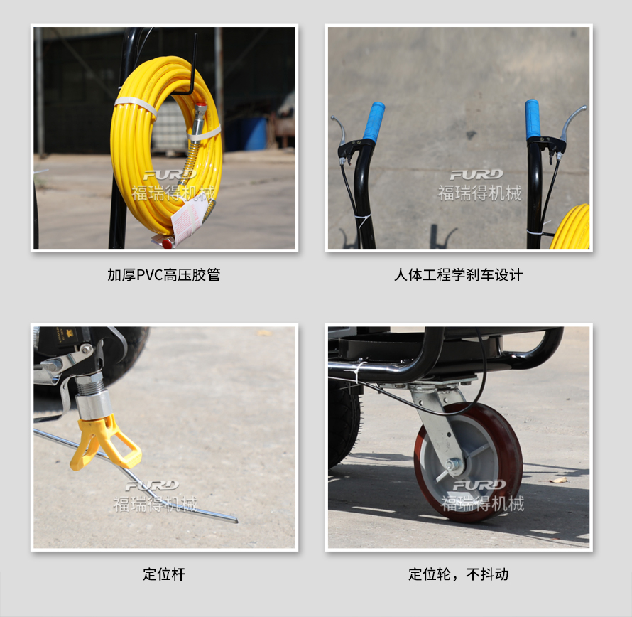 小型手推式道路劃線機是一種在道路、停車場、廣場和跑道等平整地面上劃出不同約束、指引和警示等規(guī)則限制標志的路面施工機械。最常見的就是在馬路上劃斑馬線,在路上劃車庫線、停車線等等應用于小型工程、短途施工,活動方便,靈活操作。