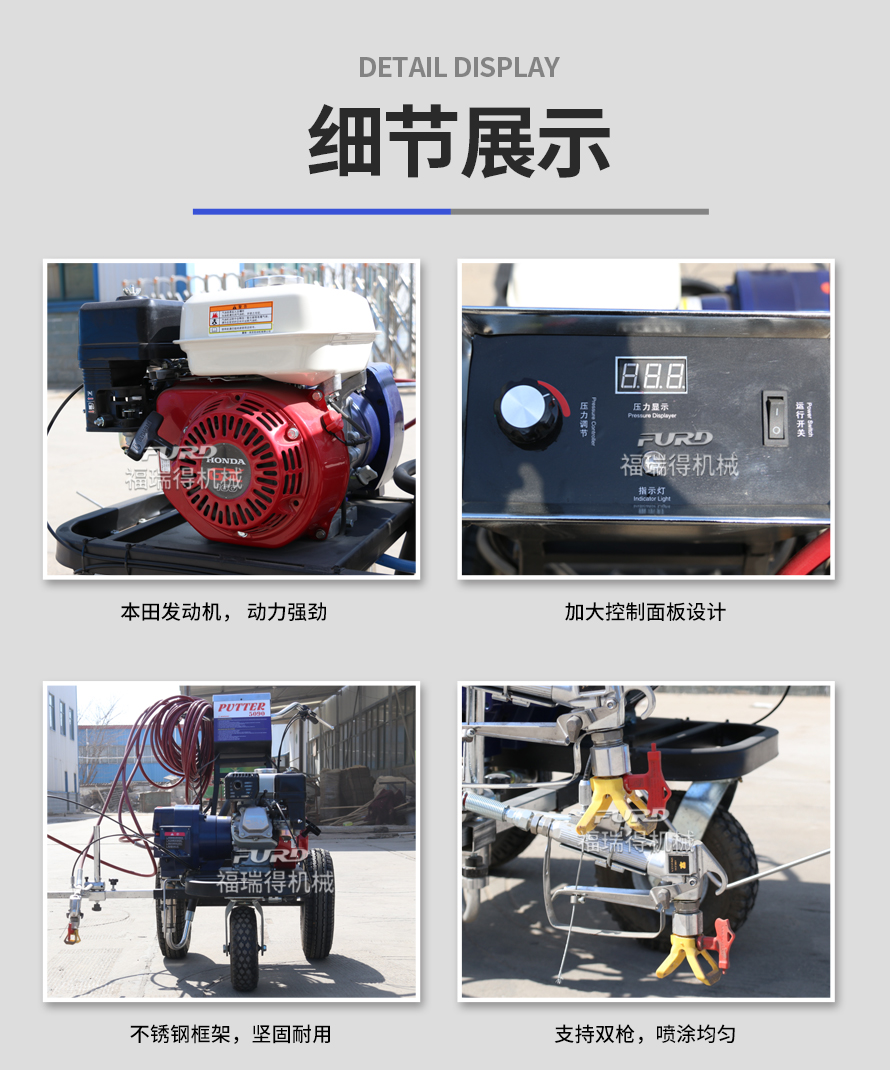 小型手推式道路劃線機(jī)是一種在道路、停車場、廣場和跑道等平整地面上劃出不同約束、指引和警示等規(guī)則限制標(biāo)志的路面施工機(jī)械。最常見的就是在馬路上劃斑馬線,在路上劃車庫線、停車線等等應(yīng)用于小型工程、短途施工,活動(dòng)方便,靈活操作。