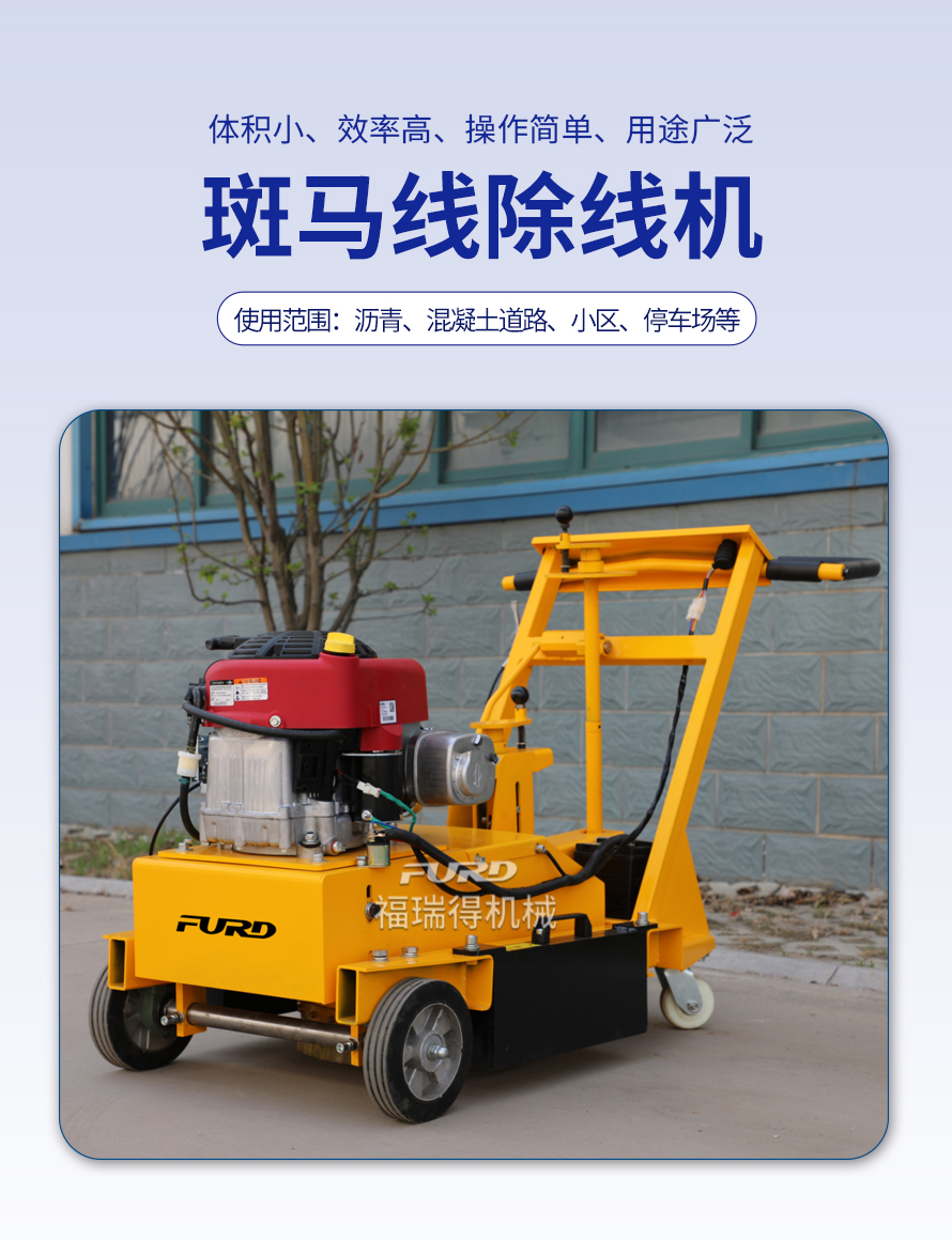 特點(diǎn):體積小、重量輕、機(jī)動靈活、工作效率高、操作簡單。 適應(yīng)范圍:主要用于瀝青道路、混凝土道路、物業(yè)小區(qū)、機(jī)場、停車場等地的標(biāo)線清除。