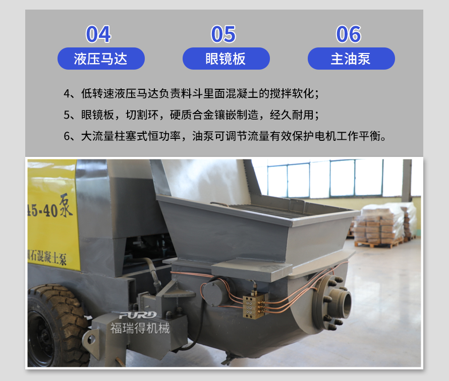 產(chǎn)品介紹: 1,大流量 采用加粗料缸,讓機械每一次循環(huán)出料多20% 2,效率高 移動便捷全部采用快接式管道卡,提高工作效率 3,便捷 本機可遠程遙控,操作不受地點限制,更加人性化 產(chǎn)品用途: 坡道灌漿,水平地面,隧道澆筑,模