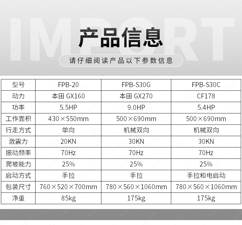 適用于路基邊緣、橋涵、管道、溝槽底部等狹長地帶的壓實。 本田汽油動力,名牌品質保證。