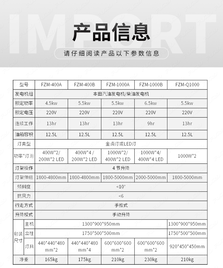 FZM-1000A 5米移動(dòng)工程照明燈車(chē)