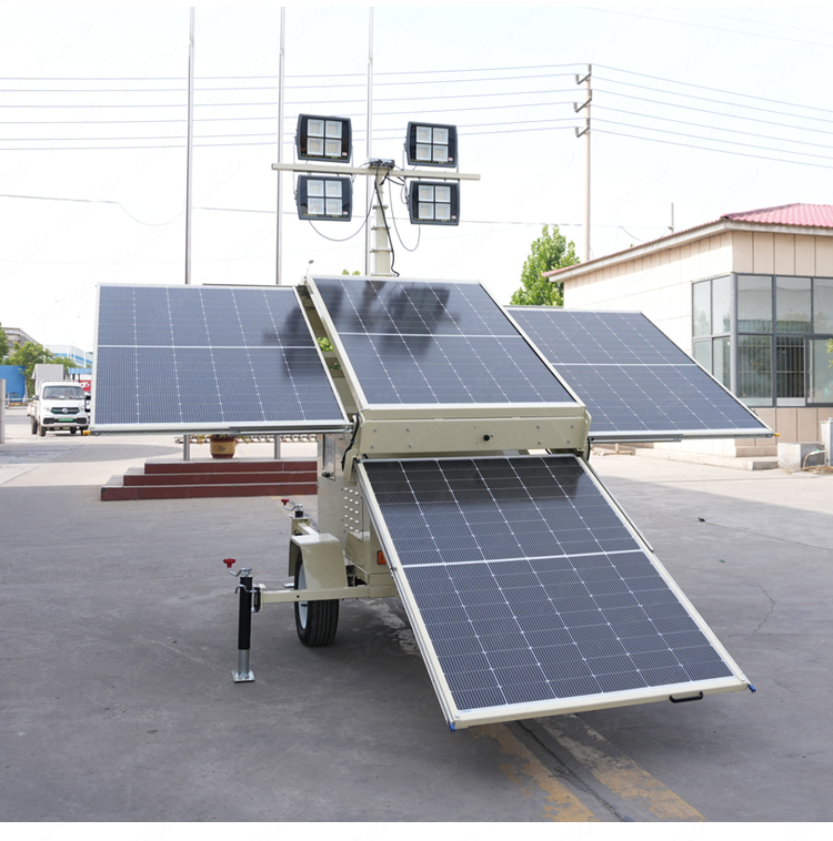 我們開發(fā)了一種新產(chǎn)品,叫做太陽(yáng)能光塔,它的設(shè)計(jì)理念是節(jié)能環(huán)保。它可以長(zhǎng)時(shí)間部署在偏遠(yuǎn)地區(qū),并由太陽(yáng)能自行供電。它通過可調(diào)節(jié)的太陽(yáng)能電池板自動(dòng)充電,運(yùn)行干凈,安靜,高效。